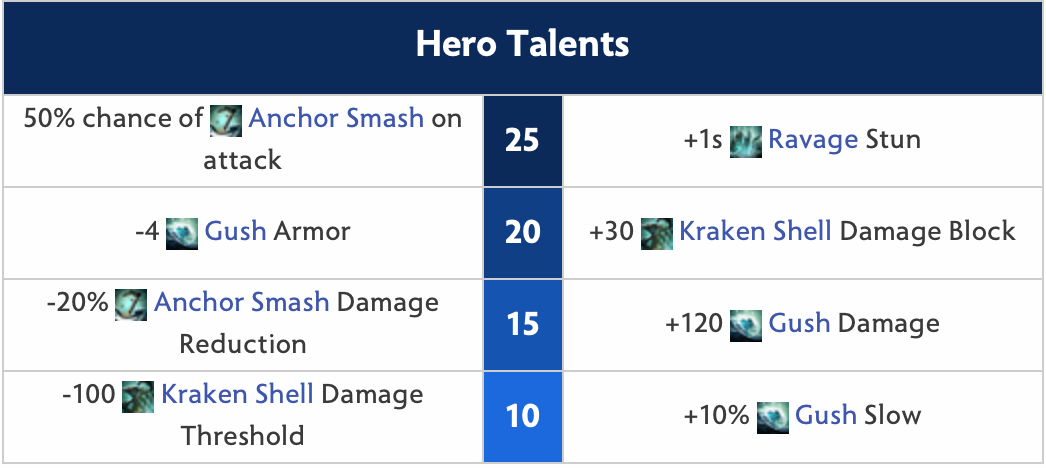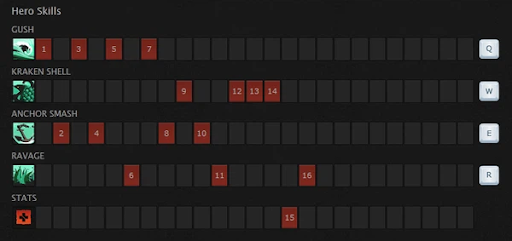 When in lane you can sometimes hit Anchor smash (E) to harass the opponent. You need to get to lvl6 as quickly as possible in order to gank with your teammates. You should have the Town portal scroll ready in your body early so that you can reverse lanes to support your teammates in time if they need you. You tank creeps pretty well thanks to two skills Kraken shield (W) and Anchor smash (E) so your problem of staying in lane is quite easy (except in case you get a gank).